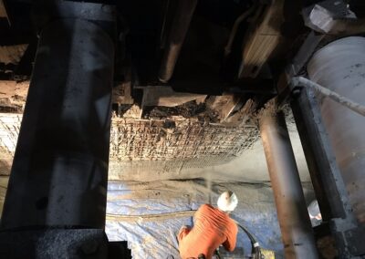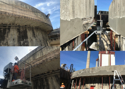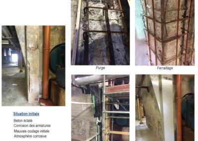 Thanks to our clients’ confidence, we are able to use our skills, to propose specific solutions in the repair and compliance upgrade of old infrastructures and also the on the one attacked by the important environmental threats, for instance : acid attacks, impacts, corrosion, etc. Since many years now, PA TECHNOLOGIES structurally operates on damaged installations. We are working in partnership with our clients and specialised study departments, to offer repairs on damaged areas. Treatments with anti-corrosion resins may also be applied afterwards.