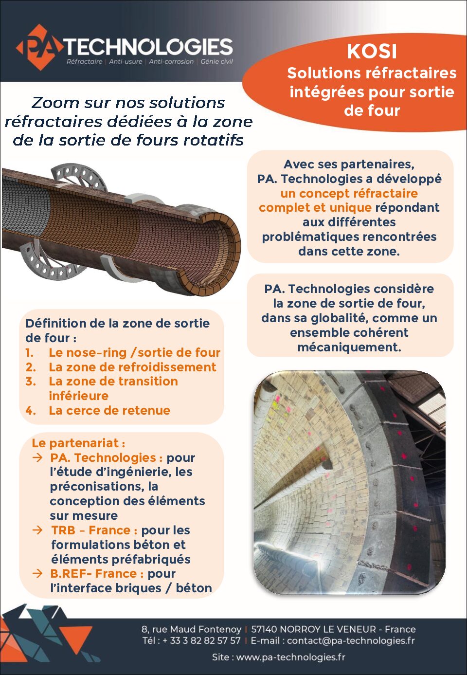 PA. Technologies, en collaboration avec ses partenaires, a mis au point un concept réfractaire innovant et complet destiné à répondre aux contraintes spécifiques de la zone de sortie de four.